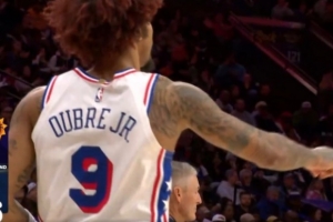 差点摔倒!卡斯尔快攻大风车暴扣表演 奥科吉上来碰了一下犯规
