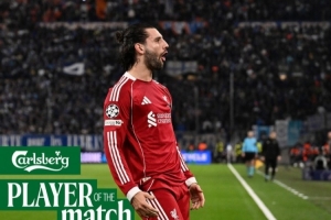 任意球建功!索博斯洛伊当选本轮欧冠利物浦队内最佳球员