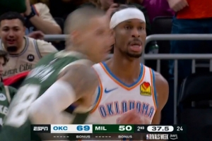 样样行!亚历山大迎着库兹马防守 干拔三分出手命中