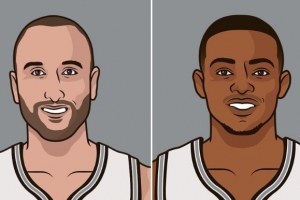 马刺队史以75+%命中率砍下30+5助+5三分的球员:福克斯、马努