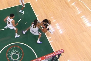 一般人可扛不住!字母哥低位背打戈登转身用肘被吹进攻犯规