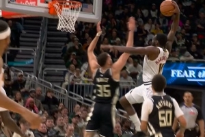 投不进就砸!哈达威冲筐面对补防单臂砸扣 字母哥替补席神情落寞