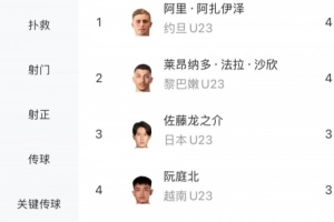 U23亚洲杯射手榜(截止决赛前)