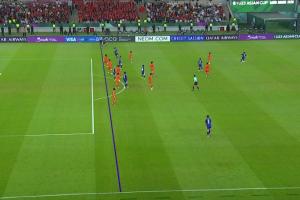 体育资讯01月24日讯 U23亚洲杯决赛,中国男足U23vs日本U23,比赛第12分钟中国队丢球,转播给出日本U23进球划线图