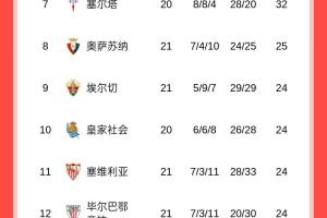 西甲积分榜:马竞先赛仍距榜首皇马7分,距第2巴萨5分