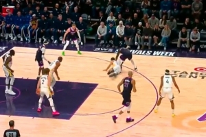 看起来就很酸爽!兰德尔干扰&球砸到裁判面部 穆迪拿到球三分!