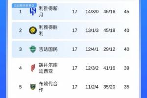 追分不易!沙特联积分榜:胜利3连败后3连胜,距榜首新月5分