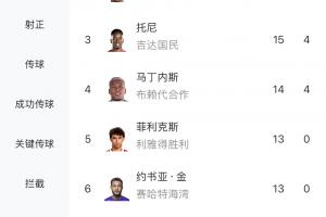 在沙特联射手榜上,奎尼奥内斯16球追平了C罗,伊万·托尼第三,菲利克斯第五。