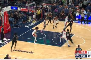 开拓者最后落后2分 给自干王夏普单打 艰难后仰中投不中……