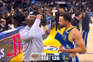功勋助教!迈克·布朗赛后和库里追梦拥抱 追梦像个孩子抱半天