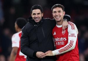 本月初接受采访时,赖斯表示:“当我得知他(苏维门迪)要加盟时,我就知道这会让我踢得更轻松一些,因为他总是在那里,我们之间有着天然的默契。教练总是强调我们俩要踢得更靠近,在场上保持紧密的传球距离,抓住每一个机会互相传球。”