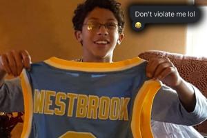 早就是你的人了!国王晒克利福德手拿威少球衣童年照:别欺负我啊
