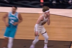 三分超级准!凯莱布·乐福半场三分4中3射落11分 送半场超远空接