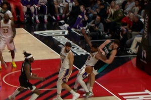 再不挑就花了!斯玛特篮板球出界 湖人挑战成功拿回球权