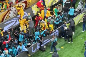 之后有不少塞内加尔球迷尝试冲入场内,还能看到许多球迷拿着椅子在殴打安保人员,场面极度混乱。