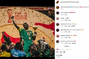 国家英雄!塞内加尔队长马内社媒晒被队友簇拥捧杯照:感谢所有人